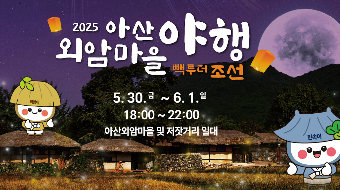 2025년 외암마을 야행은 2025년 5월 30일(금) ~ 6월 1일(일) 단 3일간 진행됩니다.